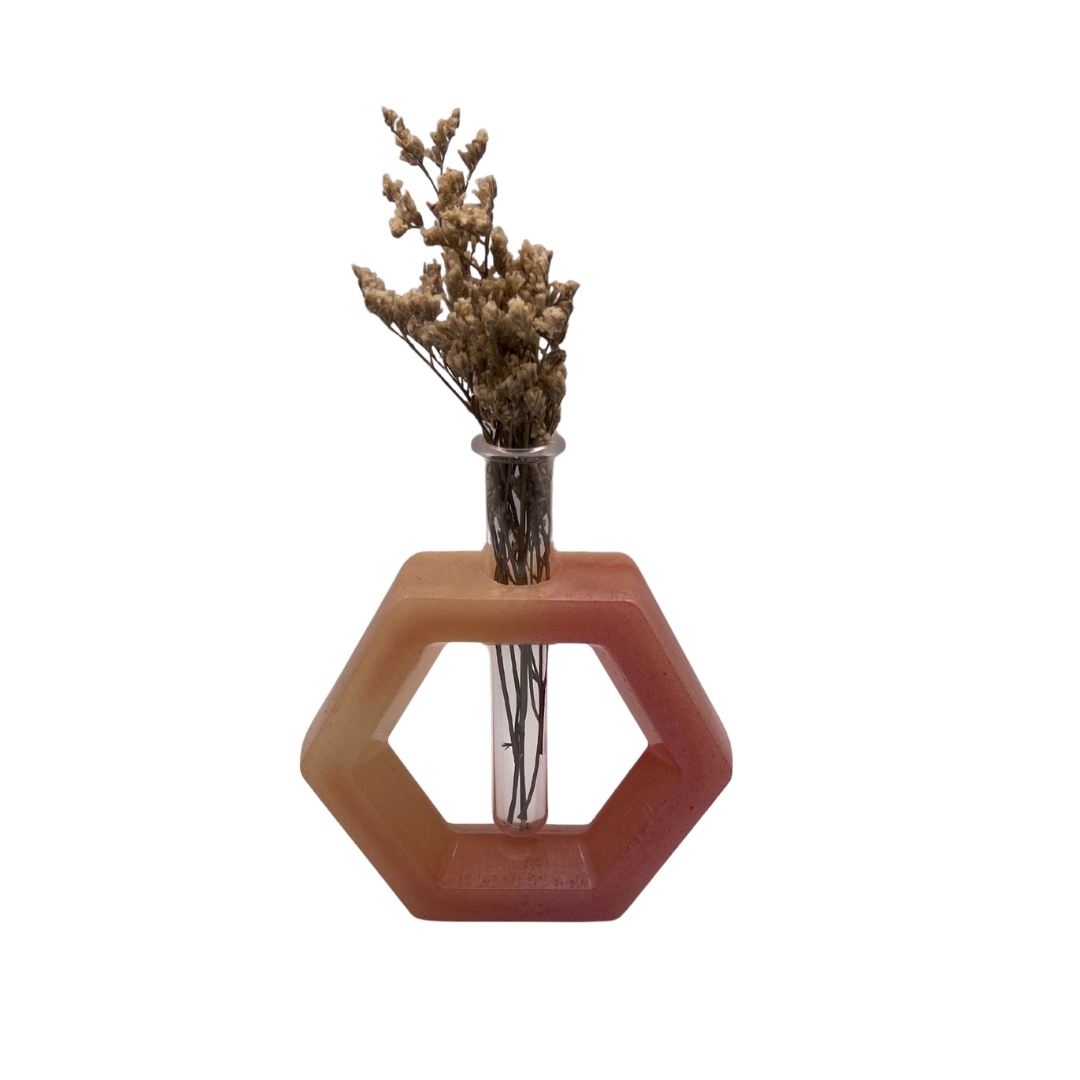 במרכז, מבחנה שבה מונחים פרחים מיובשים טבעיים העיצוב המרשים הופך אותה לאלמנט דקורטיבי מושלם לסלון, חדר שינה, משרד ביתי או מדף ספרים – מתאימה לסגנון סקנדינבי, מודרני.